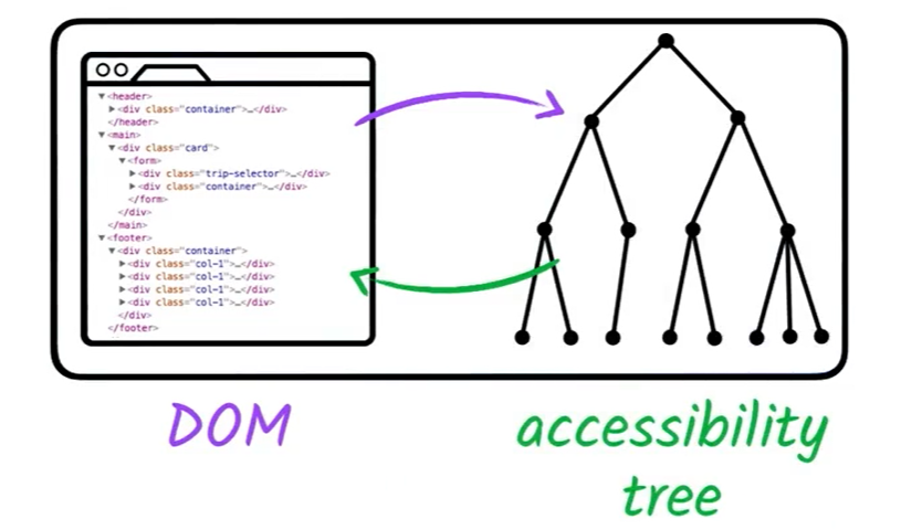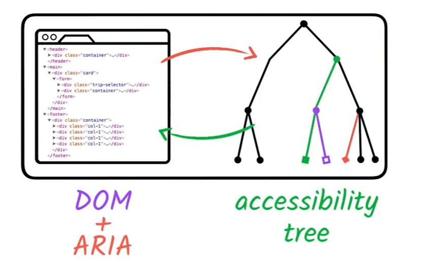 对于Accessibility tree,aria的角色是使你能够修改树,我们可以把无障碍树当做从普通HTML树中生成的树,向HTML树中添加ARIA并获得不同的无障碍树。