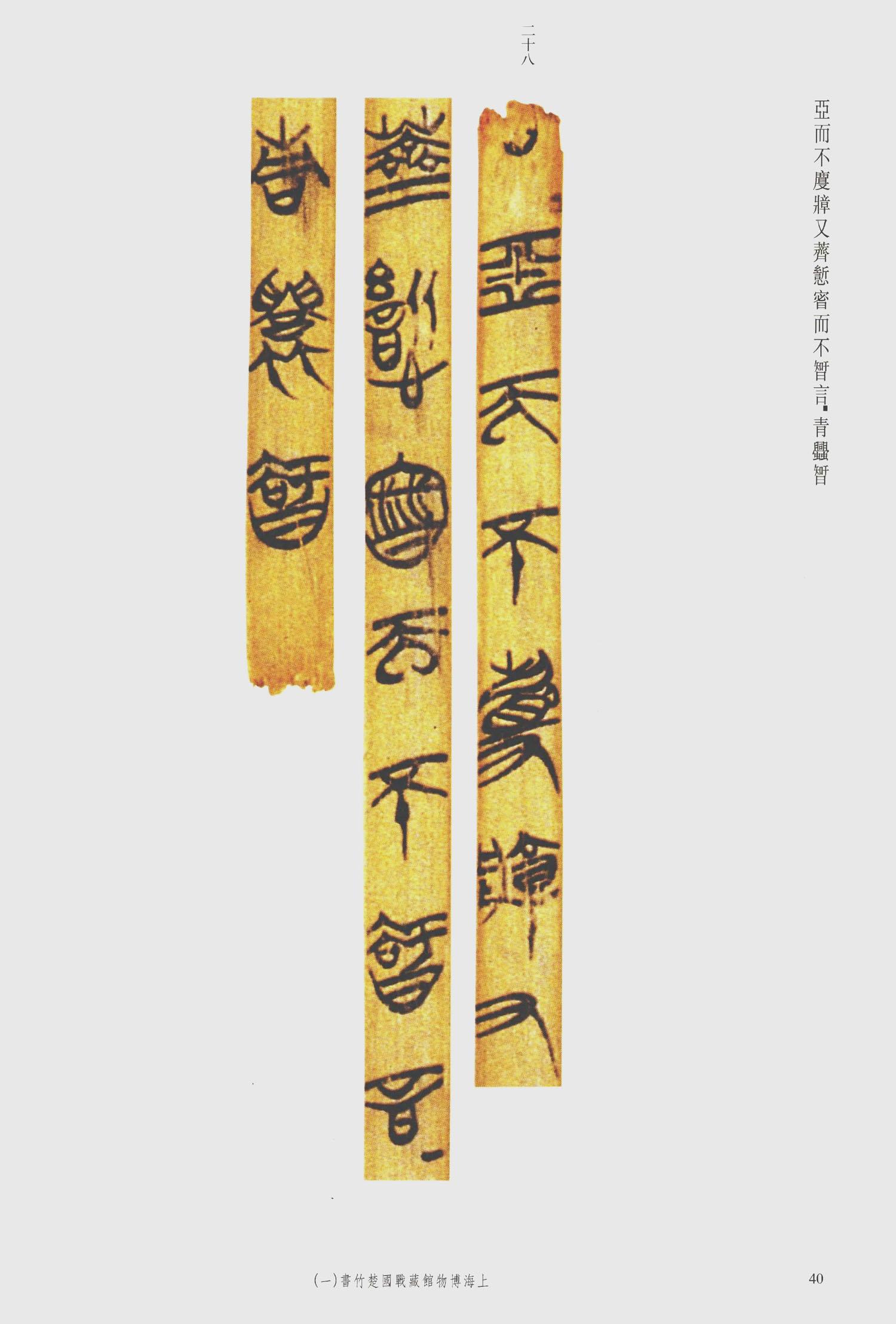 孔子曰:訨 [178] 亡𠳵 [179] 志,樂亡𠳵情,文亡𠳵言 [180] ⧄【1下】⧄忠_《北·白舟》 [181] ,悶 [182] _《浴風》 [183] ,㤳 [184] _《翏莪》 [185] ,又孝志 [186] _《隰又長楚》 [187] ,㝵 [188] 而𢘓 [189] 之也_【26】⧄《東方未明》,又利詞 [190] _《𨟻中》 [191] 之言,不可不韋 [192] 也_《湯之水》 [193] ,丌㤅婦忍* [194] _《菜萭》 [195] 之㤅婦⧄【17】⧄女 [196] 此,何?斯雀 [197] 之矣_⿺辶鬯* [198] 丌所㤅 [199] ,必曰:“𫊟奚舍之?賓贈 [200] 氏也”。