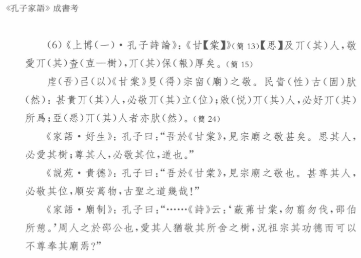 第一部分中的《甘棠》評論亦見於《孔子家語》《說苑》等傳世書籍,顯示該篇可能是其底本 [3] 。