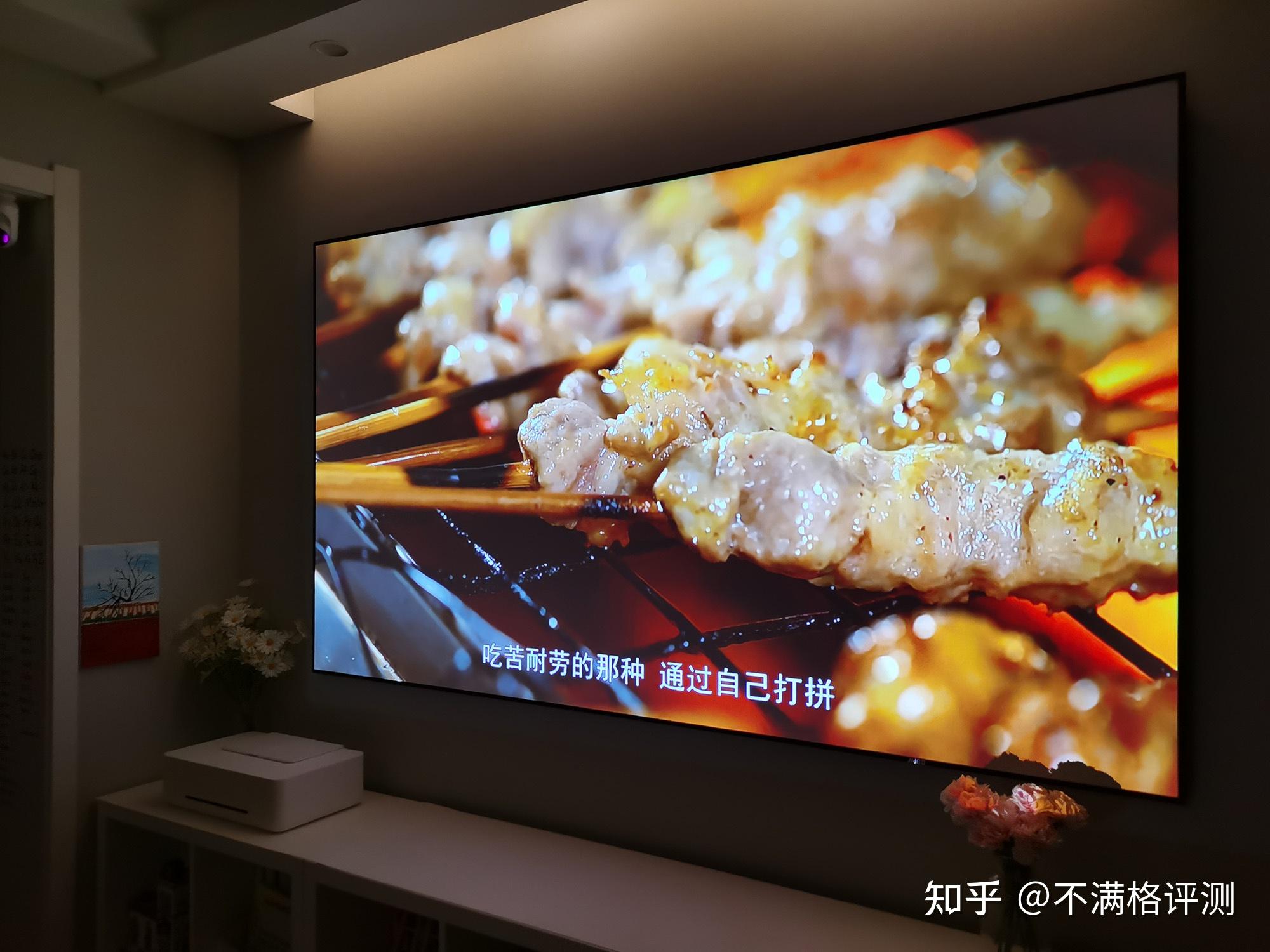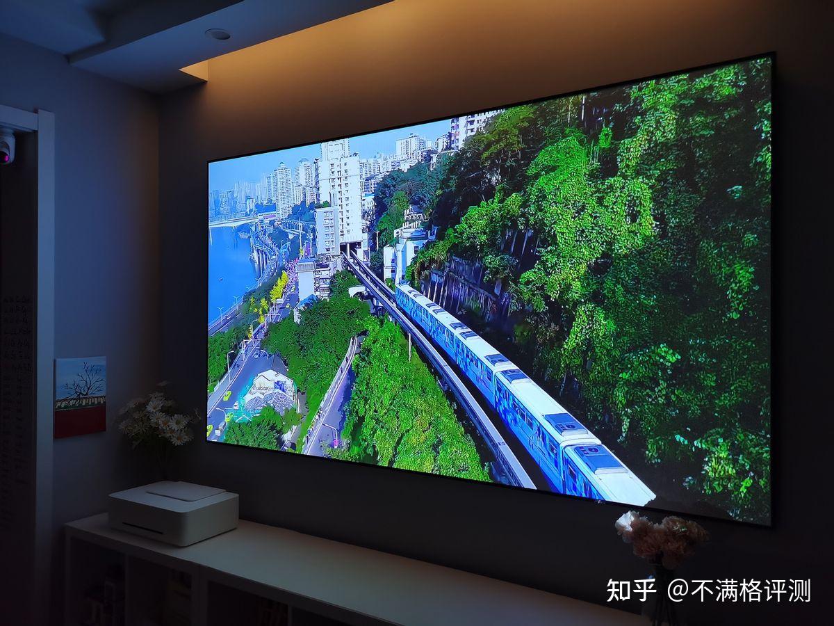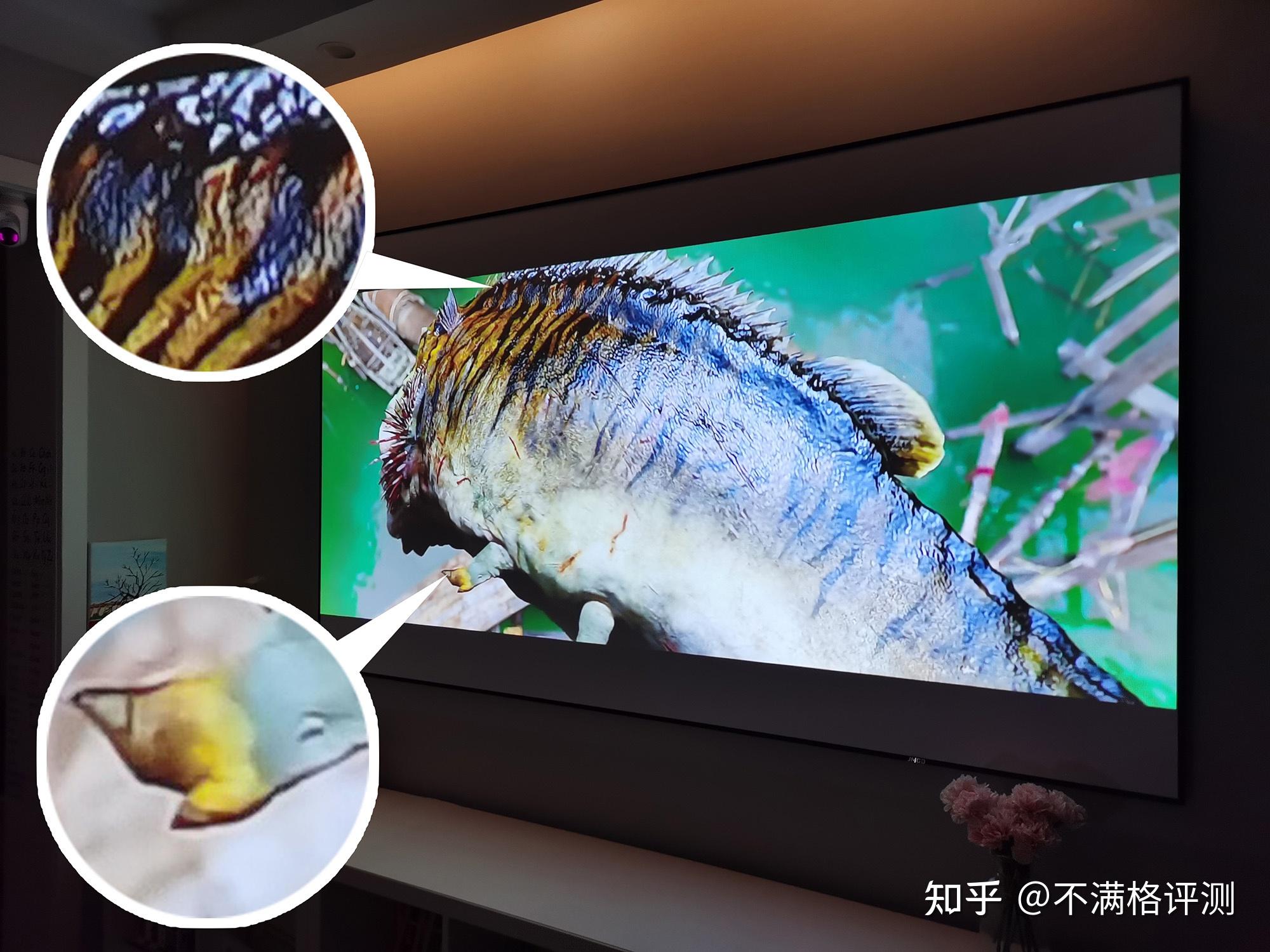 1080P的真实清晰度怎么样?拿这台天猫精灵小红盒Pro来说,它的亮度是500ANSI流明,我家的投影幕布正好100寸,它投放出来的效果几乎是镜面般的质感,很细微的地方都很清晰,即使靠近看也没有明显的颗粒感。