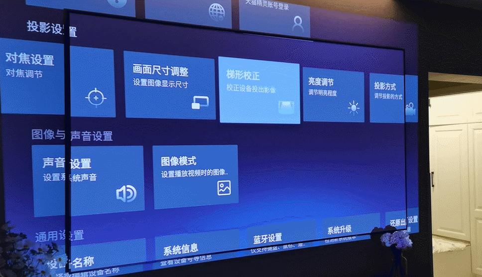 在画面矫正上,天猫精灵小红盒Pro比自动对焦还好用。它不但在开机时会自动进行一次矫正,还能在设置里一键智能矫正、手动矫正。它还有位移触发自动矫正的功能,就是投影仪如果被移动了它就会立即自动进行矫正,完全不需要手动干涉,相当省心。