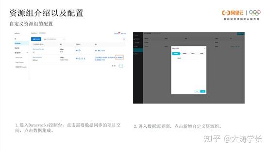 自定义资源组的配置: 自定义资源组的配置需要六步操作,首先点击进入DataWorks控制台,点开工作空间的列表,选择用户需要的项目空间,点击进入数据集成,即确认自己的数据集成是要在哪个空间项目下进行添加。之后,点击进入数据源界面,点击新增自定义资源组。要注意页面右上角的新增自定义资源组是只有项目管理员有权限添加。