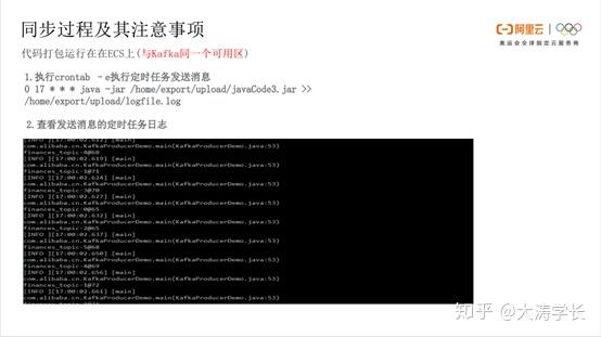 代码打包运行在ECS上(与Kafka同一个可用区): 如下图所示,执行crontab-e命令,每到17:00执行一次。下图为发送日志完成后的消息记录。