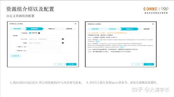 第五步是将添加服务器UUID以及自定义资源组的IP或机器CPU和内存填写进来。最后是在ECS上执行相关命令,Agent安装共5步,做一一确认,在第4小步完成后点击刷新查看服务是否为可用状态。添加完成后进行检查连通测试,检查是否添加成功。