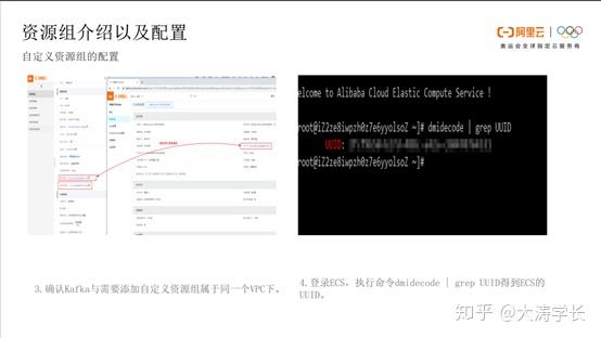第三步是确认Kafka与需要添加的自定义资源组属于同一个VPC下。本次实验是ECS向Kafka发送消息,二者的VPC应该一致。第四步登录ECS,即个人的自定义资源组。执行命令dmidecode|grep UUID得到ECS的UUID。