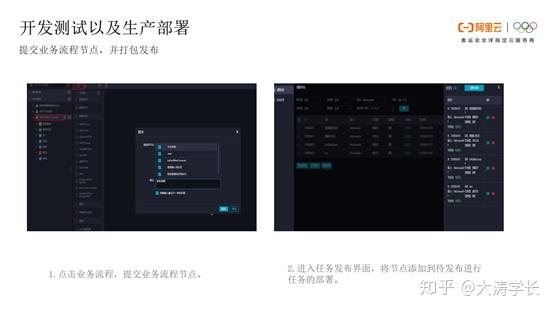 提交业务流程节点,并打包发布: 点击业务流程,选择所需要提交的节点并提交。一些业务流程提交之后不需要放到生产环境当中。然后进入任务发布界面,将节点添加到待发布进行任务部署。