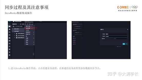 进入DataWorks操作界面,点击创建业务流程,在新建的业务流程添加数据同步节点,再进行命名。