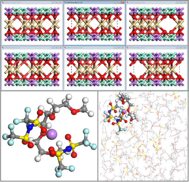 电解液:溶剂分子HOMO/LUMO,离子的溶剂化配位结构,固态电解质中的锂离子通道。