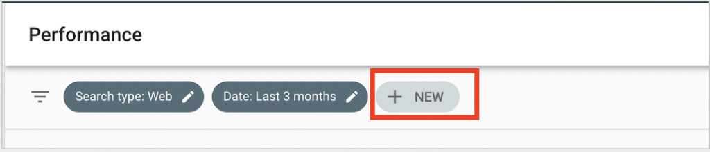 目前Google Search Console的Performance报告下的“Page”及“Query”报告支持使用正则表达(RegEx)筛选,点击下图中的New按钮,在下拉菜单中可以选择这两个报告。