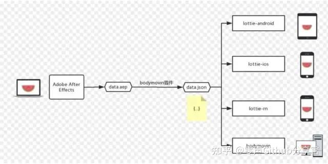 在实现动画方面,原生的方式开发成本比较高,airbnb开源的lottie有Android、iOS、RN等多个版本的支持,设计师通过AE设计好动画后,通过AE插件Bodymovin导出json和素材文件。