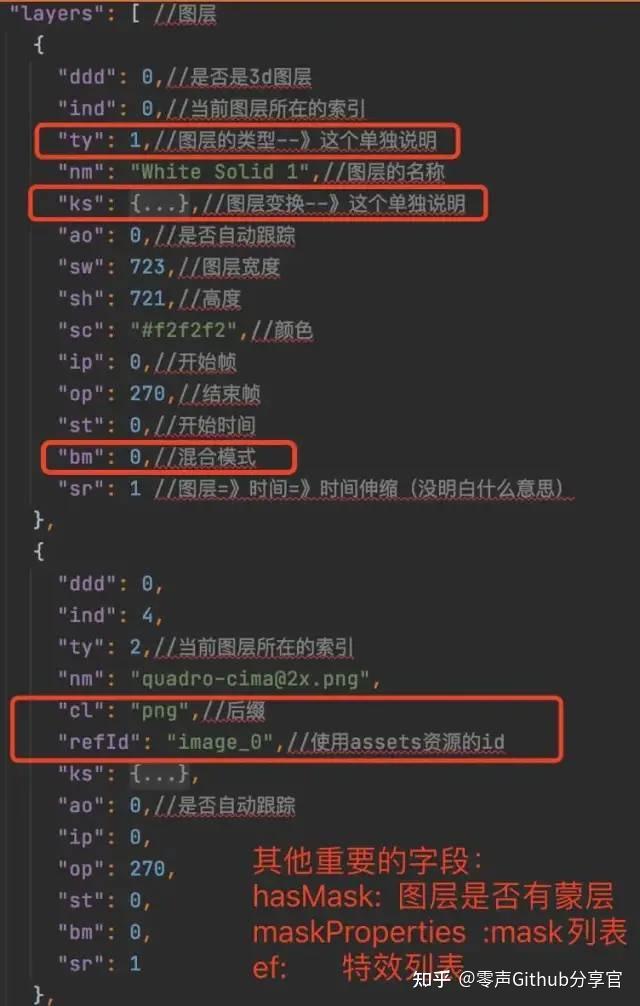 可以看到object中有layers ,assets中也可能有layers,那边layers这个图层字段包含了什么信息呐。