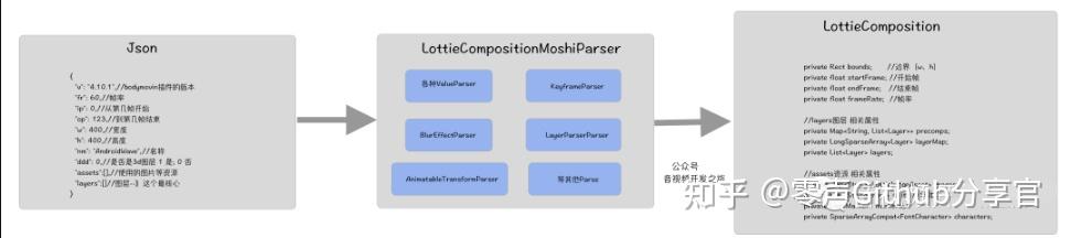 Lottie json的字段基本解释完,下面我们结合Lottie-android的源码看下解析为LottieComposition的过程
