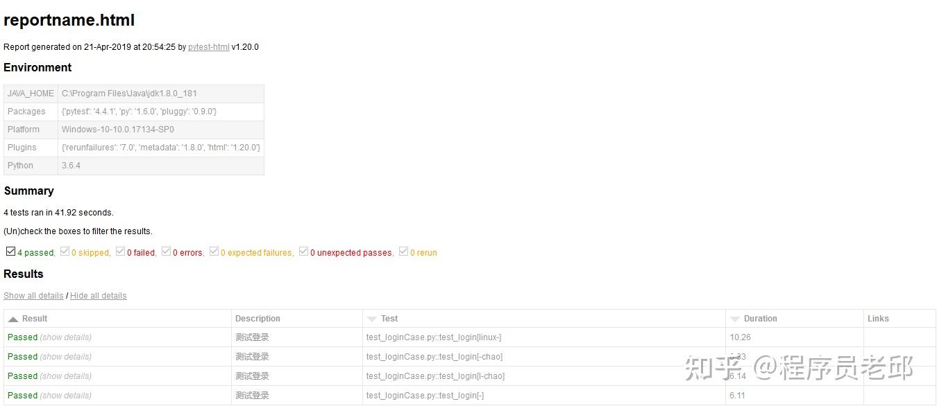 根据pytest的conftest.py文件的原理,我们可以把驱动浏览器的代码写在一个全局的conftest.py文件里面。报告生成其实是通过命令 pytest --html=‘report.html’ --self-contained-html生成的,但是这样的报告对用例的描述不是很清晰,且没有对失败用例截图,也不方便我们分析项目的缺陷,我们也可以填写代码放到这个文件里面