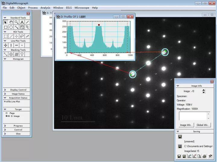 接下来我们简单演示下用DM软件标定多晶与单晶的SAED图片方法。以下是软件的工作界面。