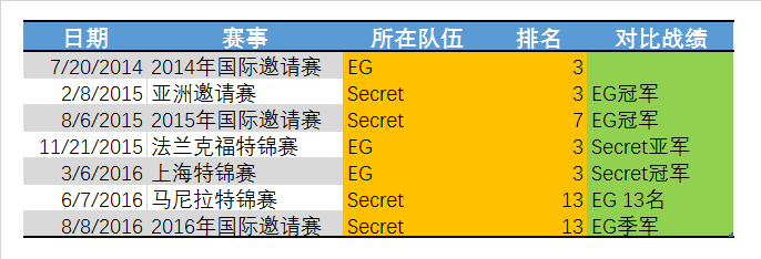 此后他离开 Secret 回归 EG,半年时间里 EG 除了 Summit 4 未尝一冠;Secret 则斩获上海特锦赛冠军。