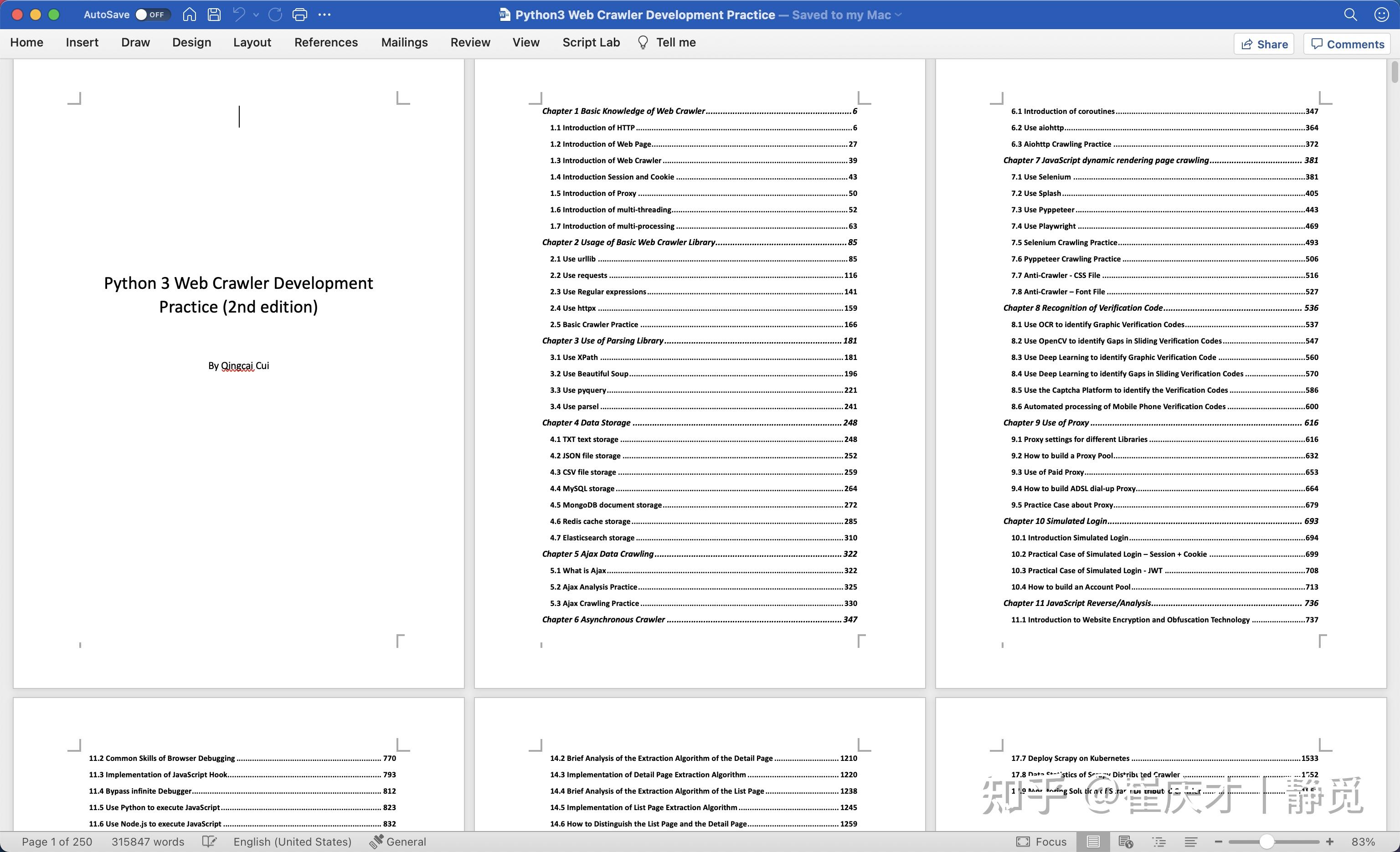 在此之前,有好几个月时间整本书的内容还在审稿和修改,等稿子审完的时候差不多就九月份了,然后九月份左右,我就拿到了编辑那边给到的全书审核完毕的 Word 文档,但还没正式排版。看了看,这个 Word 文档一共有 1000 多页,好家伙,我真的不敢相信我写了这么多。