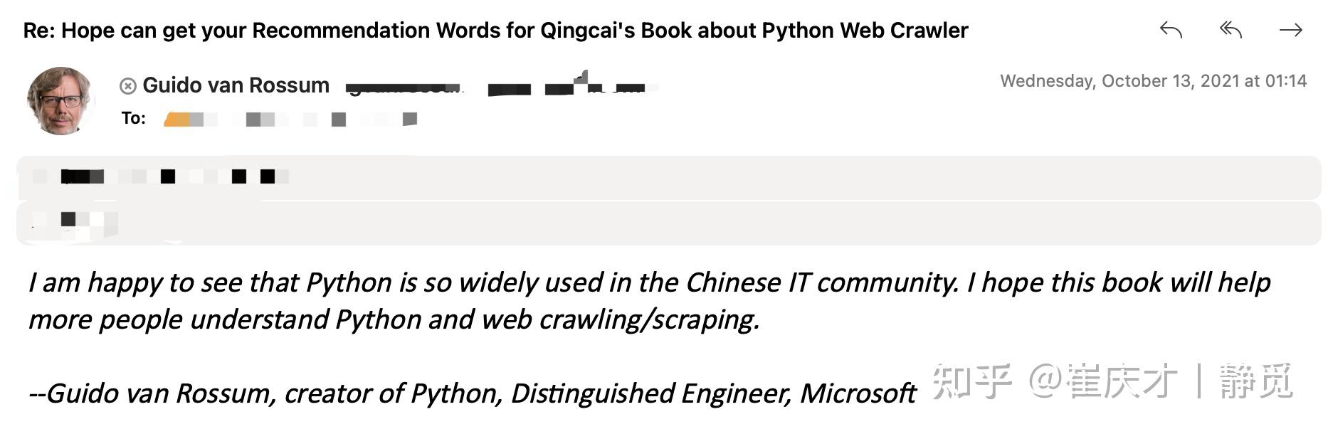 收到这封邮件的时候我真的开心地要跳起来了,太开心了!我的书得终于拿到了 Python 之父的推荐啦!