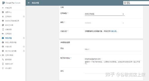 填写电子邮件地址(这个邮件地址用来接收Google Play发送的消息),然后选择你的应用类别,接下来会进入调查问卷页: