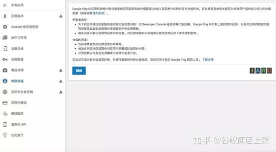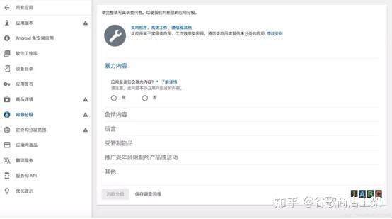 传完apk之后,就可以进行内容分级了——点击左边导航栏的“内容分级”,选择“继续”。