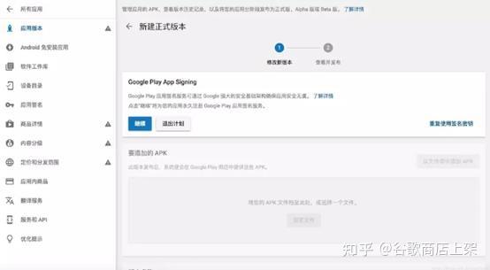 接着点击创建版本, 选择加入Google Play App Signing,其实就是一种存储应用程序签名**的安全方式,选择继续或者退出计划,都不会影响应用上架。