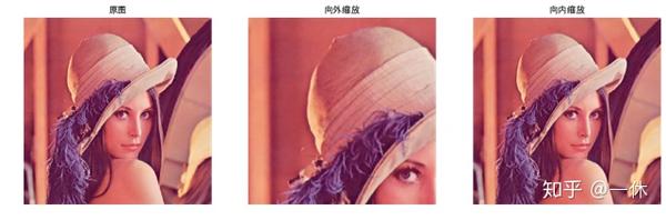 图像可以向外或向内缩放。向外缩放时,最终图像尺寸将大于原始图像尺寸,为了保持原始图像的大小,通常需要结合裁剪,从缩放后的图像中裁剪出和原始图像大小一样的图像。另一种方法是向内缩放,它会缩小图像大小,缩小到预设的大小。缩放也会带了一些问题,如缩放后的图像尺寸和原始图像尺寸的长宽比差异较大,会出现图像失帧的现象,如果在实验中对最终的结果有一定的影响,需要做等比例缩放,对不足的地方进行边缘填充。以下是缩放的代码和结果图像。