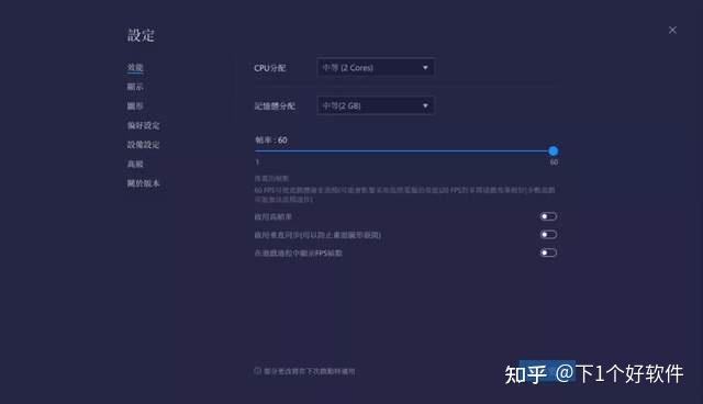 功能设置方面,支持设置硬件分配,如CPU核心、内存、帧率、垂直同步设定,如果你的电脑配置给力,全拉满就完事。