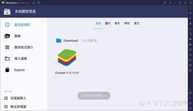 自带的多媒体管理器支持从电脑上导入、导出文件。但是不能直接拖放的方式,把文件快速导入到模拟器里。