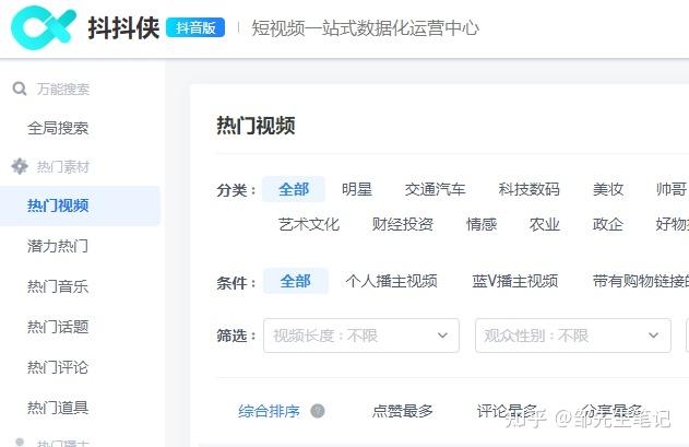 抖音短视频热门视频、商品及短视频账号的数据分析平台,大数据追踪短视频流量趋势,提供热门视频、音乐、爆款商品及优质账号。