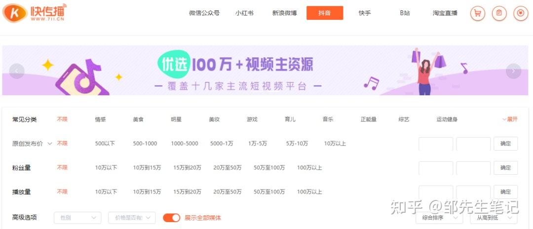 快传播平台隶属于上海亿恒网络科技有限公司,传播汇集海量优质资源,涵盖小红书、微信、微博、短视频、直播等各大媒体平台。我们致力于为企业构建新媒体传播时代高效、精准的全新营销生态,从而帮助企业实现品牌价值提升。