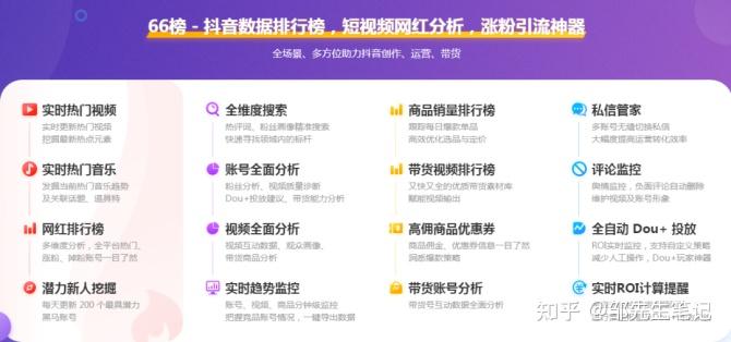 专业的抖音电商工具分析工具,提供抖音热门商品排行榜,抖音热门预测,达人与商品的监控分析等功能,帮助达人与商家更好等运营抖音号,实现流量变现。