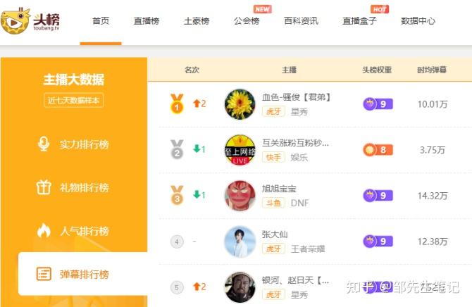 头榜数据汇聚了斗鱼、虎牙、YY、企鹅电竞、快手、抖音等主流直播平台数据,提供百万名主播人气、收入、潜力等专业的排名数据,通过主播数据与价值分析等。