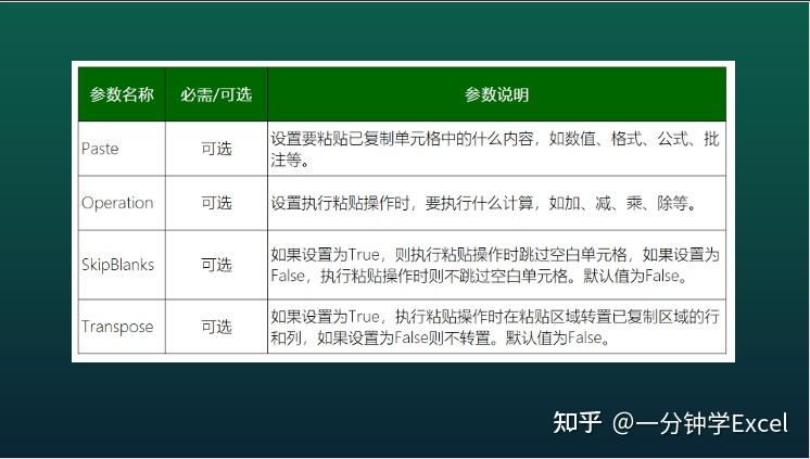 仔细观察图片与语法,你会发现,对应四个参数的恰好就是图片中的四个功能选项(粘贴、操作、跳过空单元、转置)
