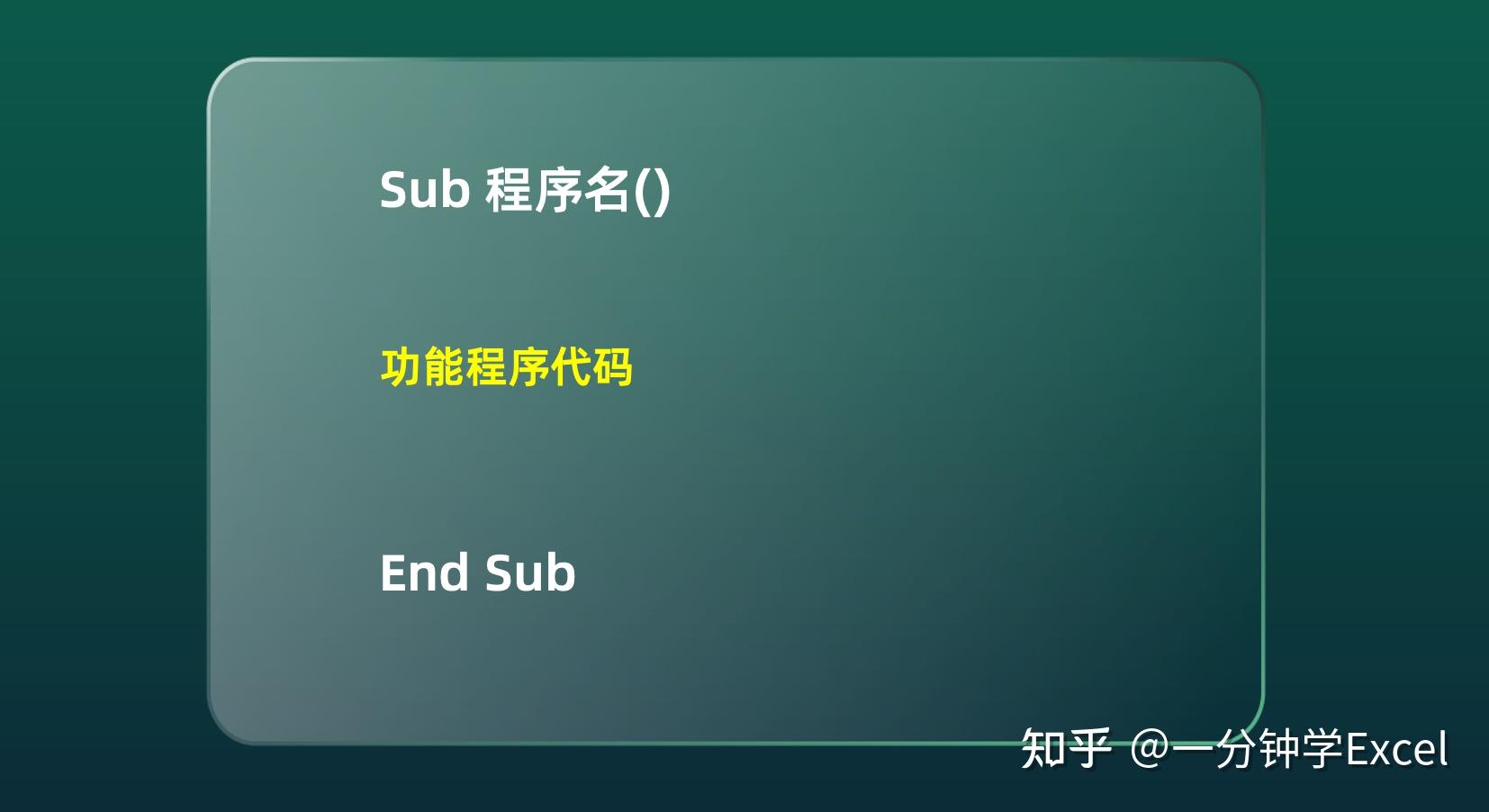 根据这三步的内容,我们分别展开VBA语句编写。首先,我们需要明白,一个VBA程序的诞生是由Sub语句开始的,中间跟上程序功能代码,最后以End Sub进行结尾。