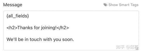 您还可以包含 {all_fields} 智能标签,它会将用户提交的信息添加到电子邮件中。