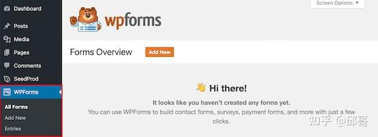安装并激活表单生成器插件后,您将在 WordPress 仪表板的左侧看到一个新的 WPForms 选项卡。