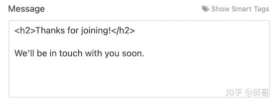 在“消息”框中,您可以写出将发送给所有提交表单的人的电子邮件。您还可以通过添加 HTML 来更改纯文本电子邮件的外观。
