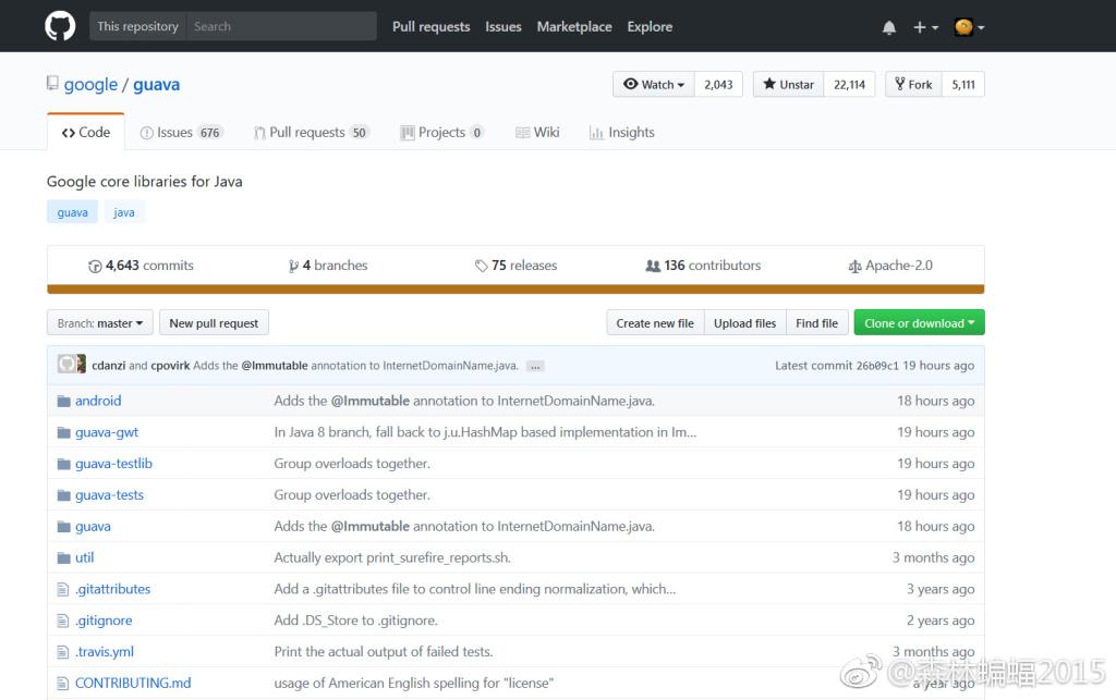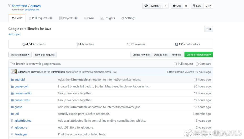 这里是 谷歌 出品的guava框架,我们觉得它的代码很好,想把它复制到自己这里来研究一番,这时就需要点击“fork”按钮,来抄一份代码。