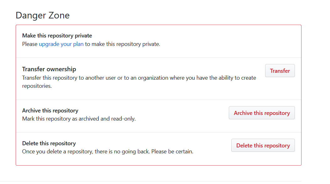 Transfer ownership:变更所有权,点击transfer按钮即可将代码库转移到他人或组的名下,如果是你创建的组,你仍然对该代码库享有控制权。