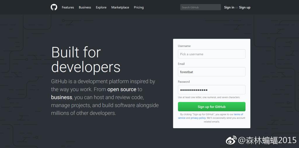 好的,现在我们假设你会选择 Git Hub,第一步就是注册个账号: