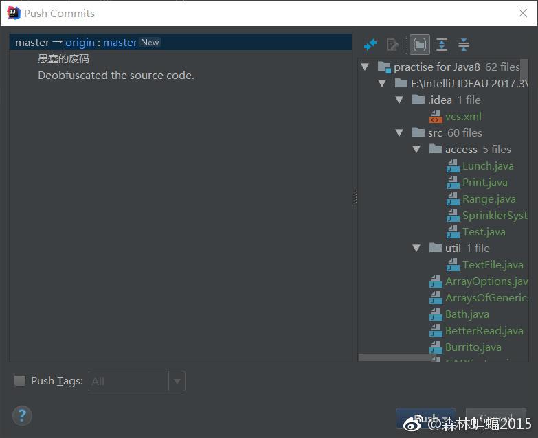 左侧是你先前输入的更新信息,右侧是你准备推送的文件,点击push即可。