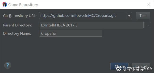 Git Repository URL:在这里填入你的代码库网址(注意是点击 clone and download之后出现的.git链接),并填入放置克隆的本地路径,点击“Clone”即可,并自动开启VCS集成。