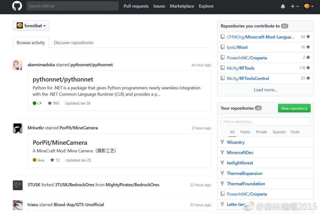 Repositories you contribute to:你关注的代码库,无论是加星的或者是“抄”(fork)的代码库。注意:在这里展示的都是作者的原代码库,而且会有加星数这样的指标。