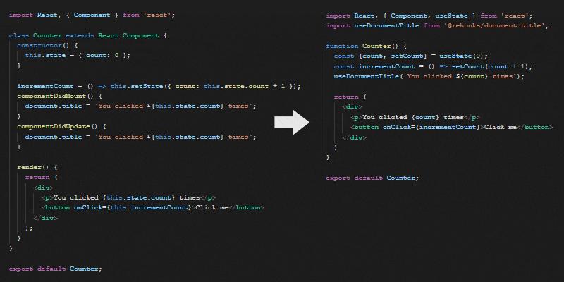 。如果在这两种方法中都有重复的代码(执行相同的处理和更新效果),现在我们可以在功能组件中执行这些操作,只需一个钩子就可以完成。