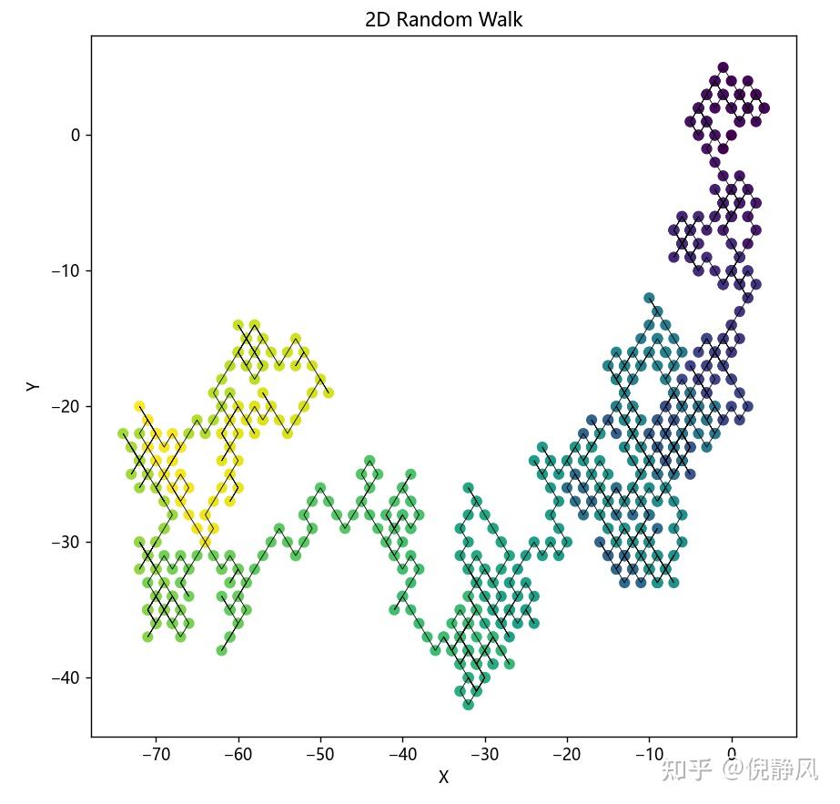 提示词:使用python写一个3维显示的2D随机游走程序,并显示出来