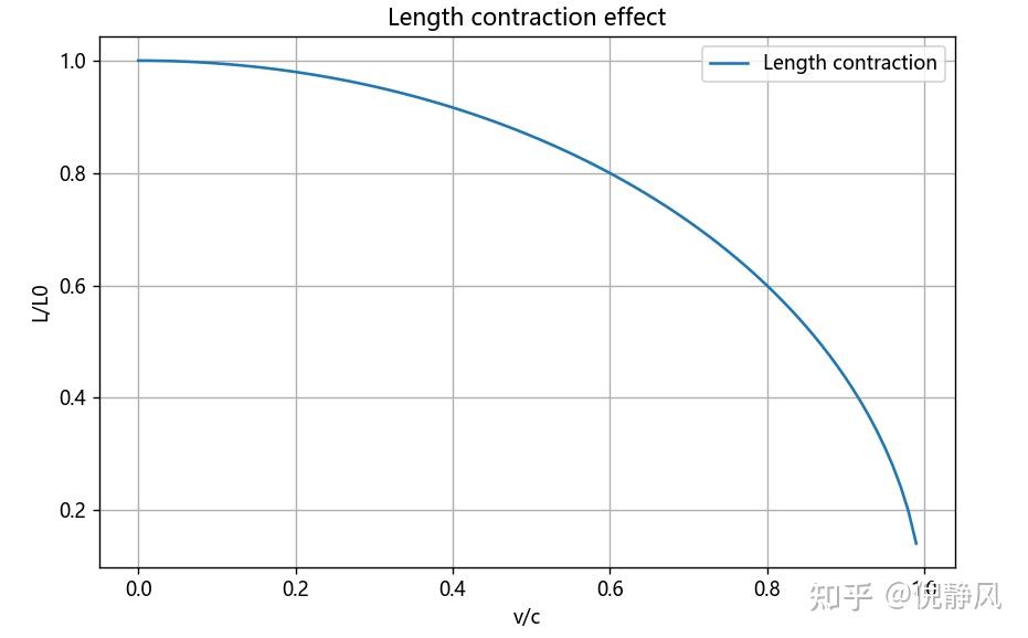 提示词:使用numpy写一个相对论的尺缩效应函数,并做图
