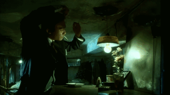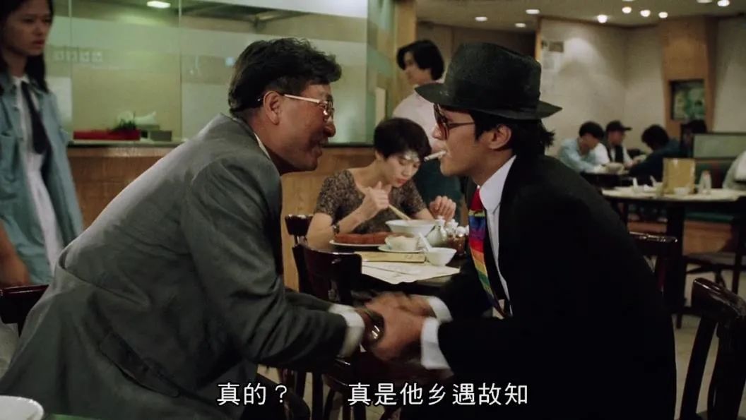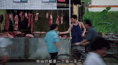 还有他站在人来人往的猪肉摊旁,缓缓拿起一杯马尔蒂尼,正是在模仿《重庆森林》梁朝伟喝咖啡。