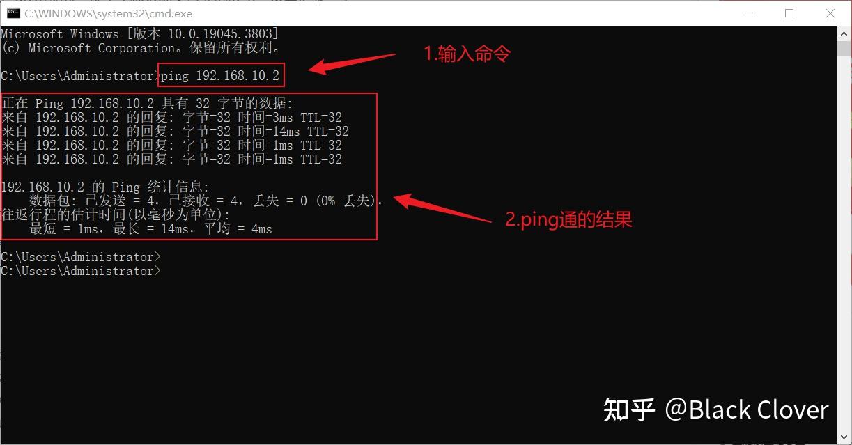 WIN + R打开“运行”,输入cmd打开命令提示符,输入“ping 192.168.10.2”
