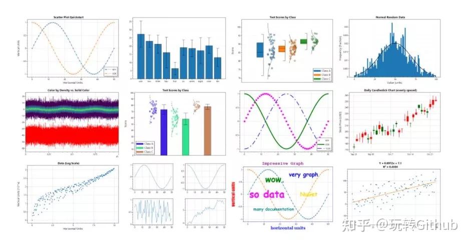 上手简单: 只需几行代码即可创建折线图、条形图、饼图、散点图等。