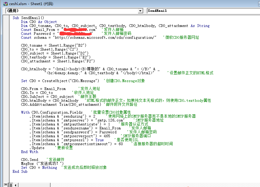 Const Password = "XXXXXXX" '发件人邮箱密码