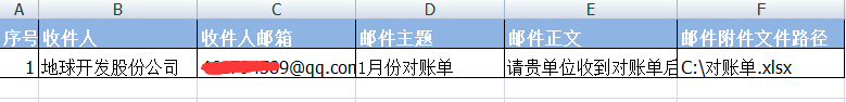 在此,需要把邮件里面的主要内容,收件人名称、收件人邮箱、邮件主题、邮件正文、邮件附件路径全部放到列表里面,具体如下图: